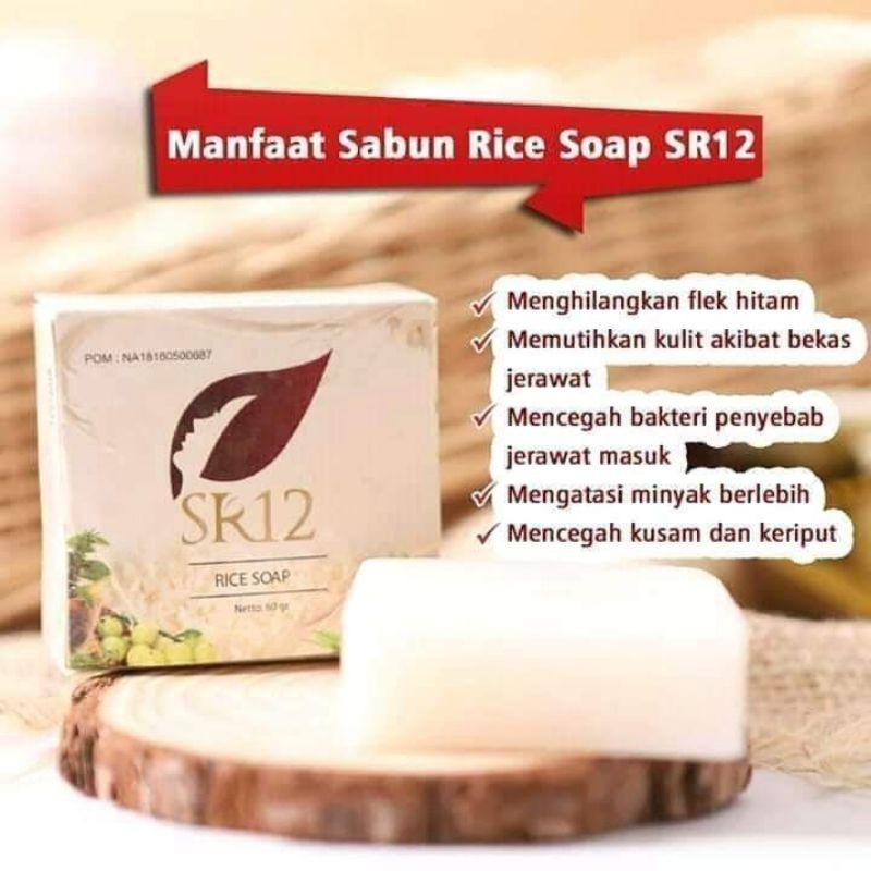 khasiat dan manfaat Sabun Beras SR12 untuk kulit tubuh diantaranya: