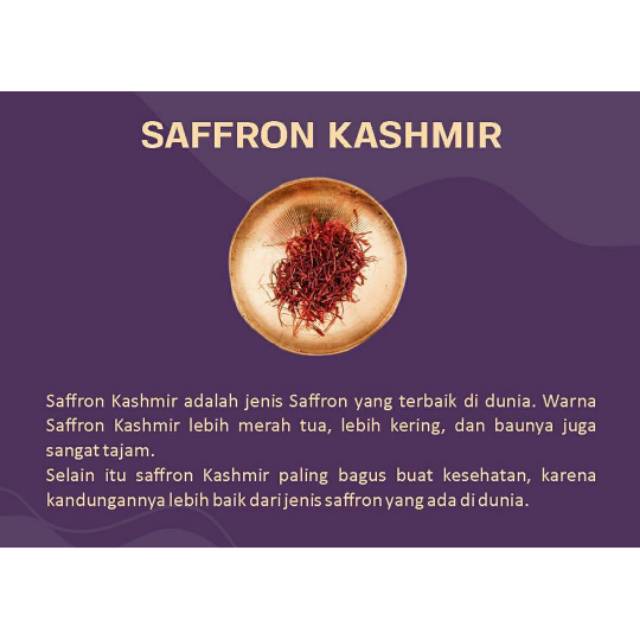 Saffron Kashmir adalah jenis saffron terbaik di dunia. Rempah2 ini adalah rempah langka dengan manfaat yg luar biasa utk kesehatan tubuh.