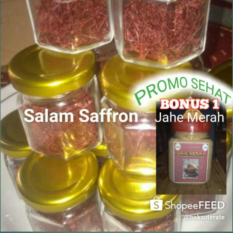 Promo,Setiap pembelian 1gram Saffron Kashmir mendapatkan bonus 1 Toples Jahe Merah 200g.