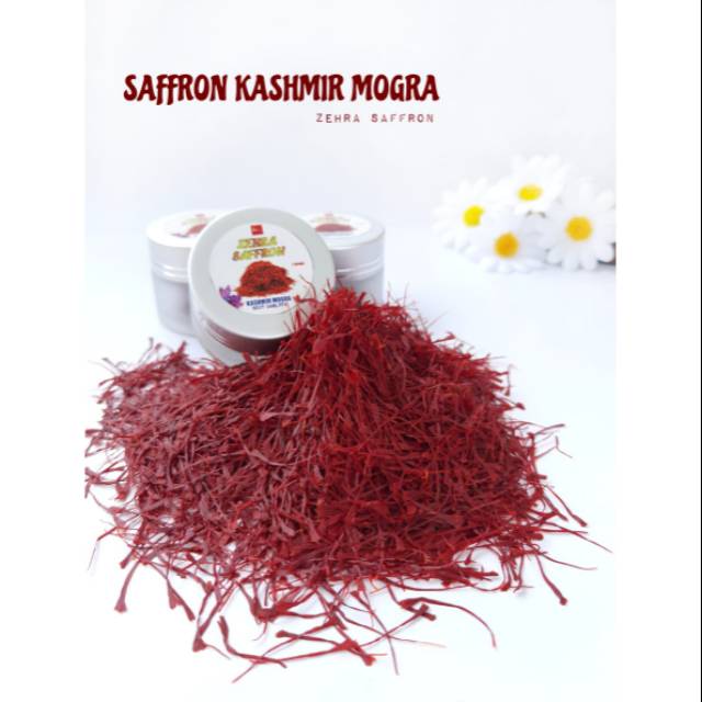 PREMIUM SAFFRON KASHMIR jenis MONGRA/PREMIUM GRADE A Bersertifikat langsung dari petani saffron di Pampore Kashmir India. In syaa Allah terjamin keasliannya ORIGINAL 100% jaminan uang kembali. Silakan chat untuk sertifikatnya. Expired 20 tahun. Berbeda dengan saffron jenis lain yang rata-rata expirednya hanya 2 tahun.