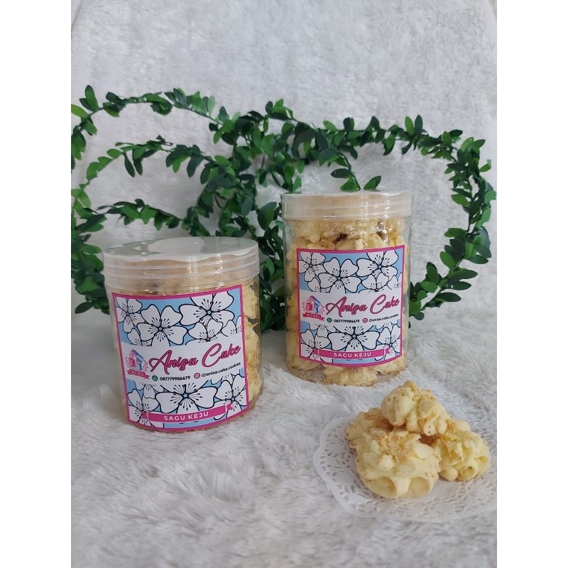 Kue sagu keju terbuat dari tepung sagu dan 2 jenis keju yaitu keju parmesan dan keju cheddar