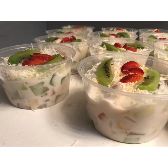 Fruit Salad isi buah Fresh dan komplit dg pelengkap Keju Cheddar dan Keju Edam Belanda Halal yg bikin lumeeer di mulut