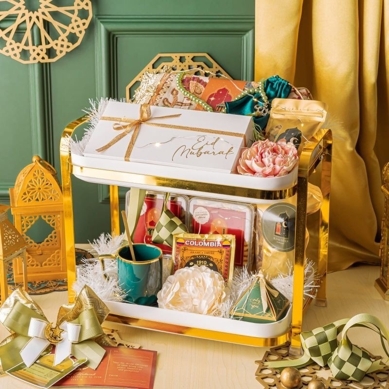 Gelas Premium Toples Persegi Dengan Piring Dan Sendok Emas