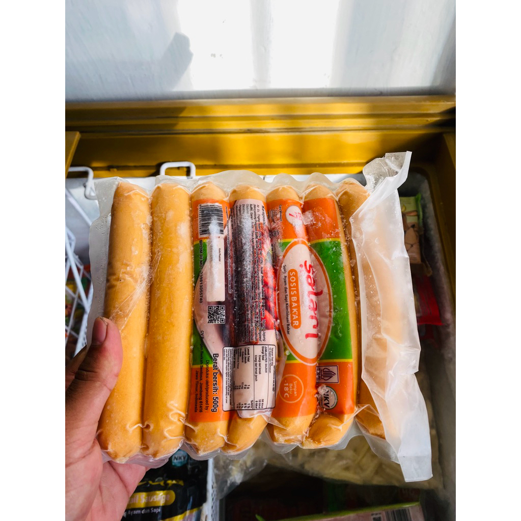 Salam sosis bakar" adalah nama produk sosis bakar yang dijual oleh merek Salam. Sosis ini merupakan kombinasi sosis ayam dan sapi yang dapat dimasak dengan cara digoreng atau dibakar. Salam Sosis Bakar Mini 500gr tersedia dalam kemasan isi 12 atau 13 potong, dan merupakan sosis bakar siap saji.