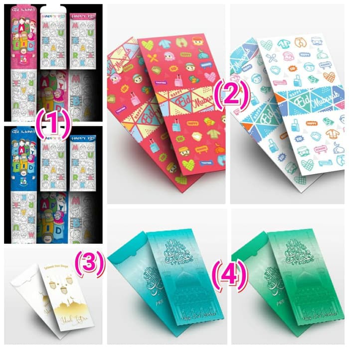 Amplop Lebaran dengan aneka motif dan rna,serta desn unik dan lucu serta berkarakter, dengan bahan kertas kualitas bagus "ART PAPPER LAMINATING GLOSSY"kertasnya tebal tidak mudah rusak/lecek, mengkilat sehingga hasil cetak sangat bagus, dengan ukuran 7,5x16 cm, uang kertas tidak perlu dilipat, ada klip pengunci amplop jadi tidak perlu di lem atau staples dengan kapasitas hingga 20 lembar pecahan berapa saja.