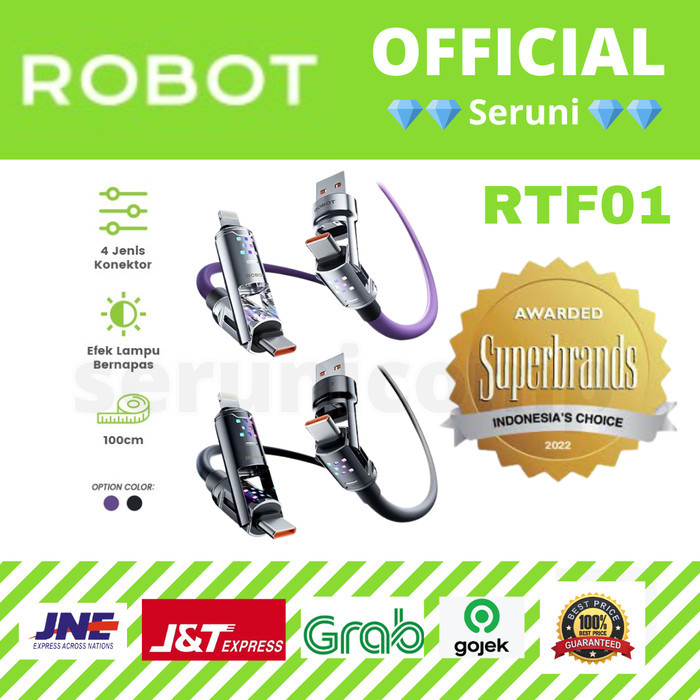 ROBOT Kabel Data Fast Charging 65W Kabel Konektor 4-in-1 100cm RGB Material Silikon Lentur Tahan Api RTF01 Original - Garansi Resmi 1 Tahun