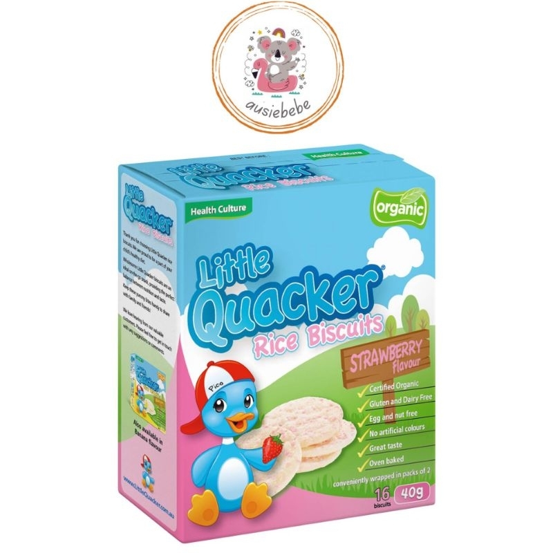 Made with organic certified rice which is naturally gluten-free, Little Quacker Rice Biscuits are a healthy alternative with no artificial additives. Our organic snacks are a perfect balance between nutrition and taste. Also egg and nut free and are therefore suitable for those who are sensitive to these allergens. Little Quacker Rice Biscuits are the ideal on-the-go snack. Available in strawberry flavour.