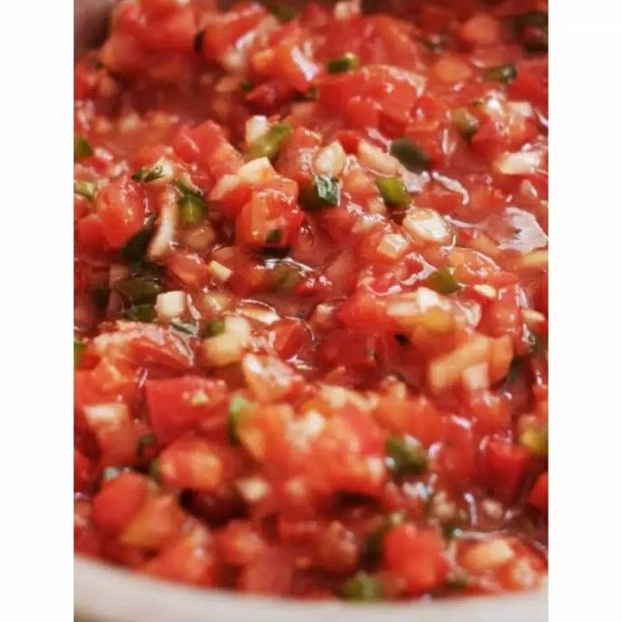 sambal salsa homemade. menggunakan sayuran organic, tnp bahan pengawet. cocok berpasangan dengan chicken skin / nachos. sehat ngemil sayuran