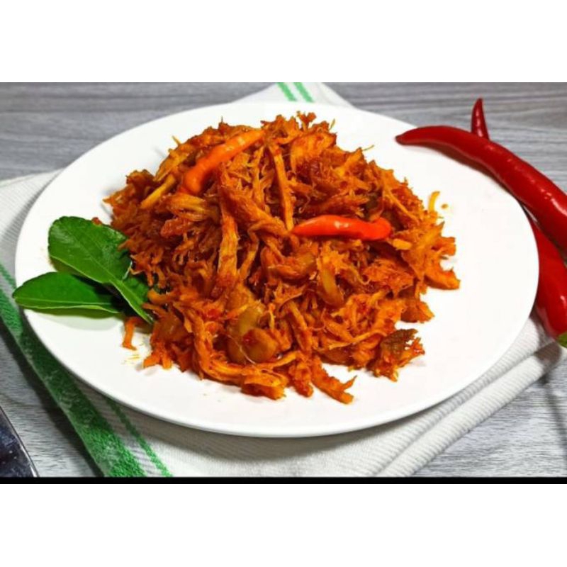 sambal ayam suwir, sambal rumahan dengan kenikmatan rasa lokal Indonesia, di produksi bumbu dan rempah berkulitas yang bercampur dengan pedasnya sambal.