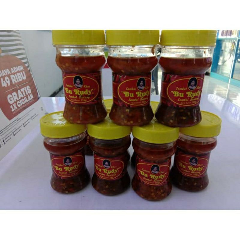 Sambal adalah salah satu makanan pendamping khas nusantara yang terbuat dari bahan utama cabai dan digemari oleh berbagai kalangan. Salah satu jenis sambal yang banyak digemari oleh kalangan anak muda, dewasa, atau orang tua adalah jenis sambal bawang. Oleh karena itu, Bu Rudy menghadirkan salah satu jenis sambalnya, yakni sambal bawang Bu Rudy. Sambal Bawang Bu Rudy merupakan sambal yang terbuat dari bahan baku bawang dan cabai berkualitas pilihan dan segar. Bahkan, untuk menjamin kualitasnya tetap terjaga, sambal bawang Bu Rudi diproses secara higienis, praktis, dan mudah dibawa travelling.