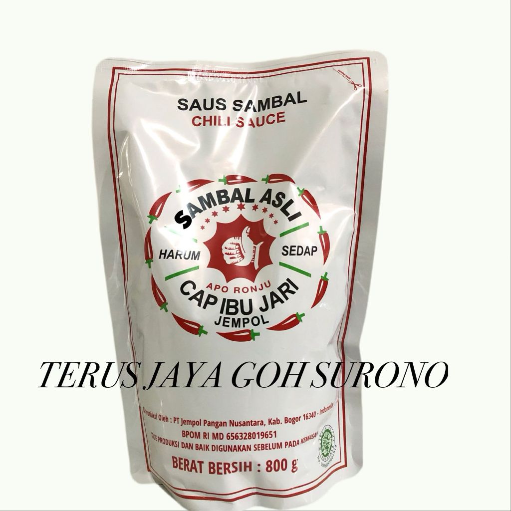 Sambal Asli Cap Ibu Jari JempoL. Rasa dari saus sambal ini ialah pedas, asin dan gurih. Sangat lezat untuk dijadikan cocolan semua makanan terutama mie instant, gorengan DLL. refill pack berat 800gr HALAL.