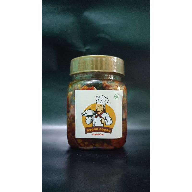 Sambal pedas dengan resep keluarga dan dimasak dan dikemas dengan higienis.