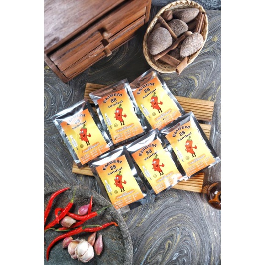 Sambal embem88 terbuat dari bahan pilihan dan mempunyai cita rasa yg khas. Sambal88 mempunyai Packaging yang simple dengan bentuk sachet mudah dibawa kemanapun...