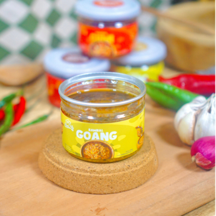 Sambal Goang merupakan sambal yang terbuat dari Cabe merah, cabe Cabe rawit hijau , bawang merah dan beberapa rempah pilihan lainnya. Sambal ini memiliki rasa pedas dan lezat untuk disajikan dengan nasi hangat dan lauk lainnya. Bumbu yang digunakan merupakan bumbu segar yang langsung digiling dan dikemas pada saat terdapat pemesanan. Hadir dalam kemasan toples plastik kecil dengan berat bersih 125 gram, memasak menjadi lebih praktis dan mudah.