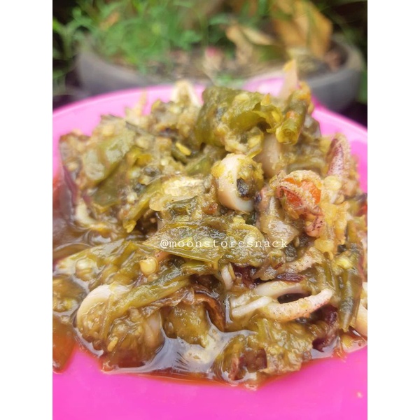 Sambel hijau Pedas Cumi cumi, Sambal yang di campur dengan Cumi yang segar, Sambel ini sambel yang wangi di karenakan ada perpaduan cumi dengan bahan bahan yang lainnya, Rasa yang nikmat dan LEZAT bikin kamu ketagihan Teruss!!