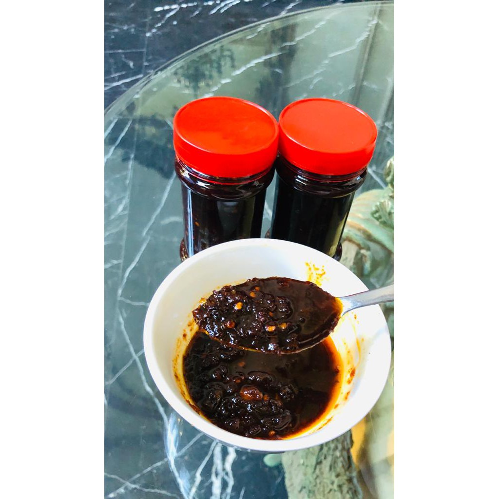 Sambal Hitam a kelapa dibuat dari rempah lengkap dan kelapa yang disangrai dengan api kecil selama lebih dari 5 jam, menjadikan rasa sambal ini mantap. selain untuk sambal mendampingi lauk, sambal ini biasanya juga sering dijadikan sambal bumbu untuk bebek goreng atau ayam goreng. rasanya luar biasa.....