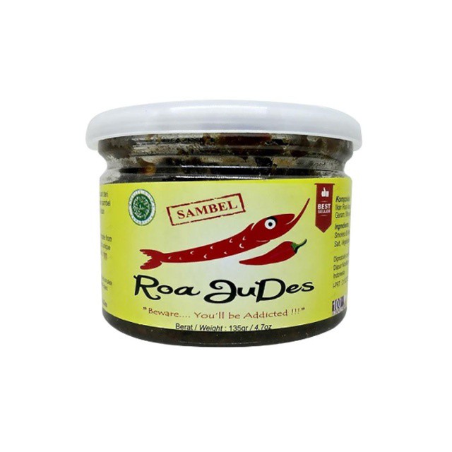 1 kemasan Sambal Roa Judes berisi 135gr sambal siap saji.