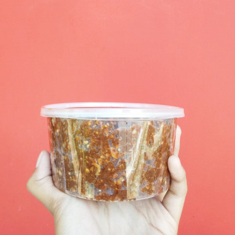 Sambal terbuat dari perpaduan dari kacang tanah, cabai, gula merah, daun jeruk nipis, buah asam, dan garam (TANPA BAHAN PENGAWET).