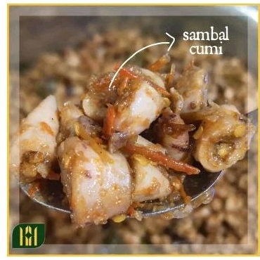 Sambal Cumi (KOTA HOEDJAN) terbuat dari cumi segar dicampur dengan cabai, bawang dan bumbu rempah lainnya.. cita rasa dari sambal cumi yaitu pedas gurih dan asin (cumi)..