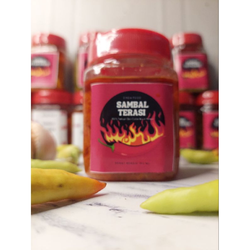 Sambal terasi yang di produksi dengan bahan alami tanpa bahan pengawet buatan. Di buat dengan bahan yang segar.