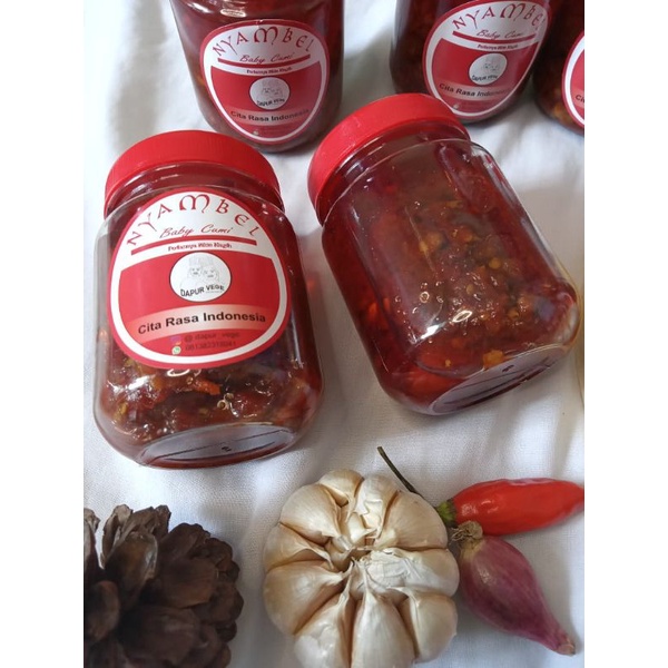 NYAMBEL. Ada berbagai varian yaitu Nyambel Baby Cumi (Non Vegetarian) dan juga Nyambel Empal Pedas (Vegetarian). Dibuat dari bahan-bahan pilihan yang segar dan proses memasak yang bersih. Rasanya dijamin sedap dan pedasnya pas bikin nagih... Paling enak disantap dengan nasi hangat. Nett: 150gr