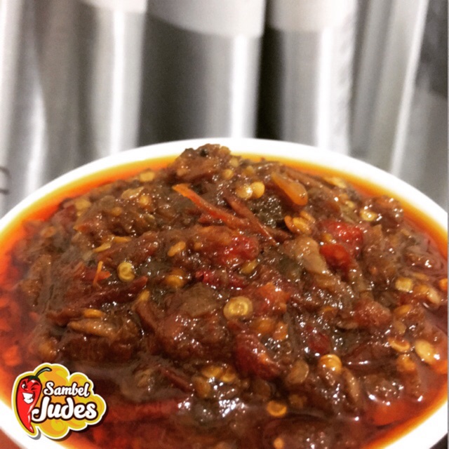Sambel Judes "Juara pedes"nya ❤️ Sudah ada TERI JENGKI dalam sambel?? Yess dear!! Varian ini di dlam sambel sdh ada TERI JENGKI nya!! Mana?? Kok ga keliatan?? Becoz TERI JENGKI kan gede2.. Jadi kita haluskan dulu sebelum campur dg SAMBELnya... Serukannn?? Jadi makin jelas banget rasa teri nya