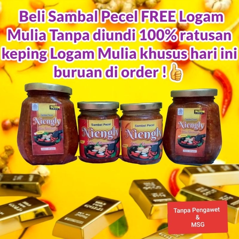Sambal Pecel NiengLy terbuat dari Kacang yang disangrai ditambah bumbu Rempah-rempah yang berkwalitas menjadikan rasa bumbu Pecel lebih gurih dan manisnya pas. Ada 2 varian rasa Pedas dan Sedang.cara penggunaannya mudah tinggal ambil sambal pecel secukupnya dimangkok dan ditambah air hangat lalu aduk sampai rata.Bumbu pecel NiengLy Cocok buat stok dirumah,Di kos-kosan,maupun buat oleh - oleh saudara tercinta,teman,keluarga.Kemasan yang praktis dan mudah dibawah kemana saja tanpa takut tumpah dan blepotan .