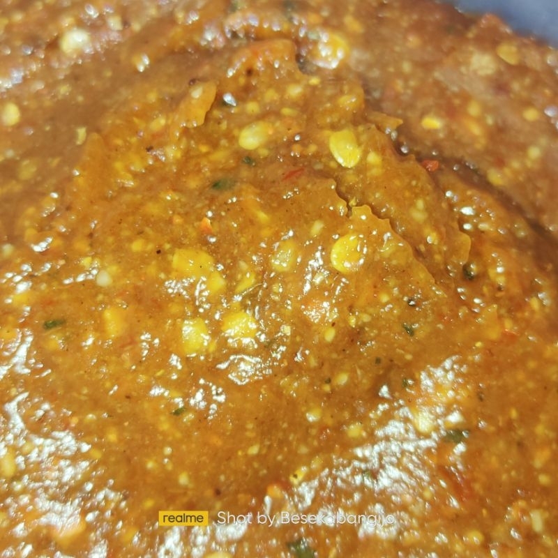 Sambal pecel sangrai tidak menggunakan minyak, apa bila ada minyak itu minyak dari kacang itu sendiri.