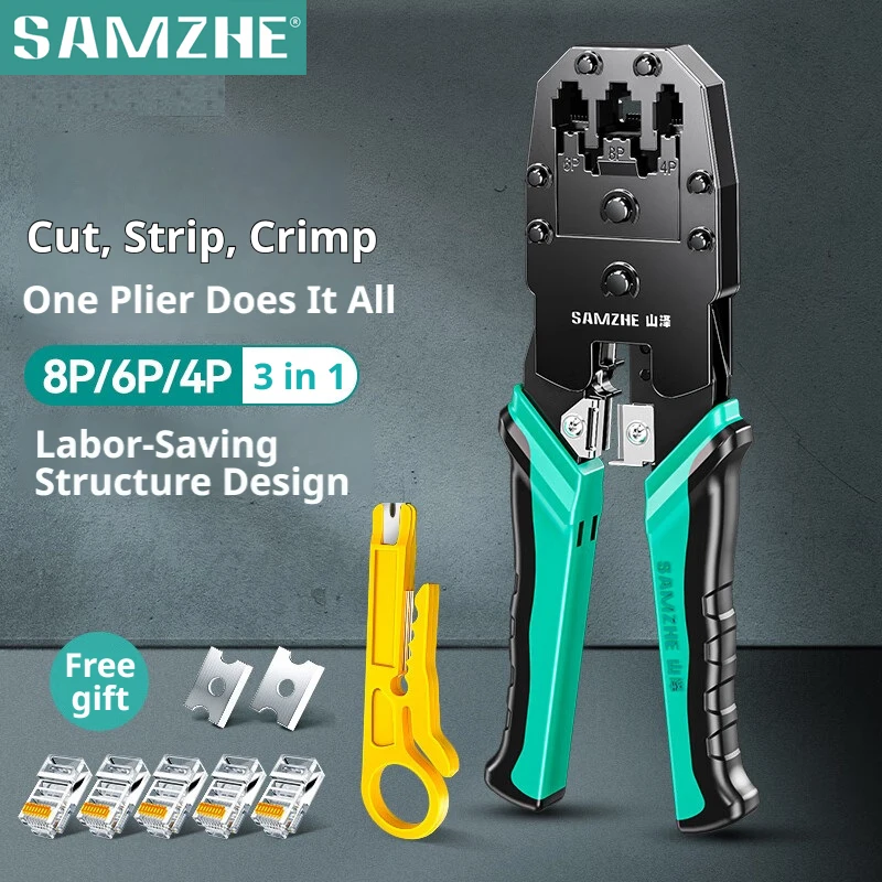SAMZHE RJ45 Crimper Tools Crimping Pliers Ethernet Network LAN Cable Crimper Cutter Stripper Plier for CAT5/6/7/8 RJ45 RJ11