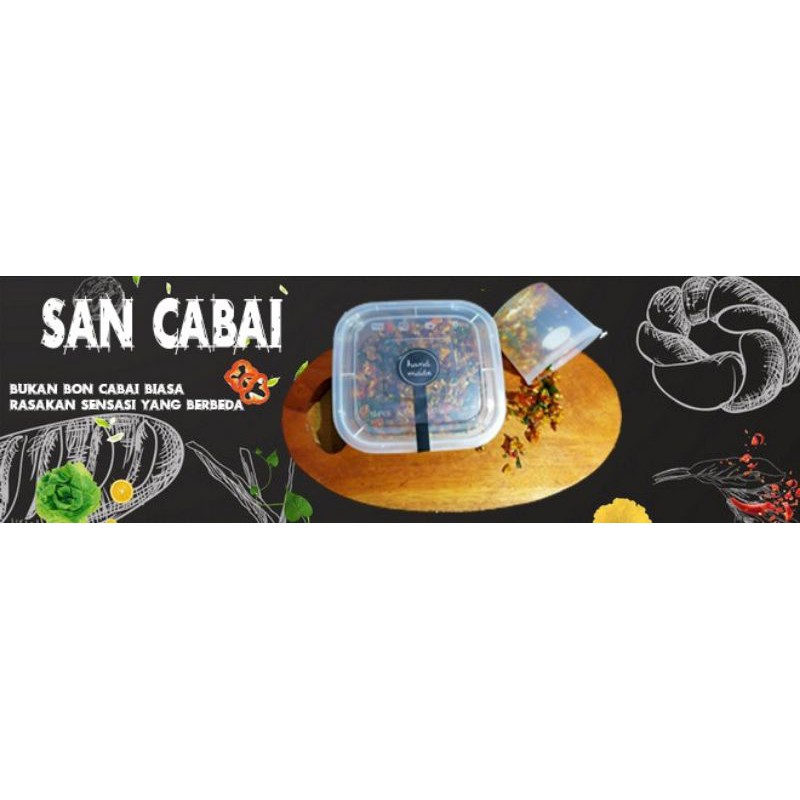 SAN CABAI, terbuat dari cabai pilihan yang di rajang halus dengan bumbu rempah pilihan dengan sensasi rasa yang mengesan kan. cocok di makan dengan apa saja