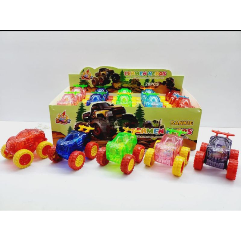 permen aneka rasa buah dengan packing mainan mobil monster sangat kokoh dan lucu