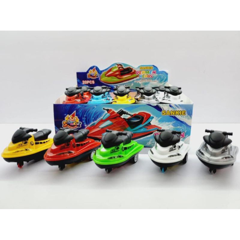 Sankie permen aneka rasa buah dengan mainan bentuk speedboat yang kokoh dan lucu