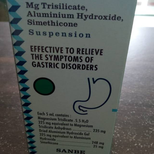 Komposisi : Per 5 mL : mg trisilicate 325 mg, Al(OH)3 colloidal 325 mg, Simethicone 25 mg