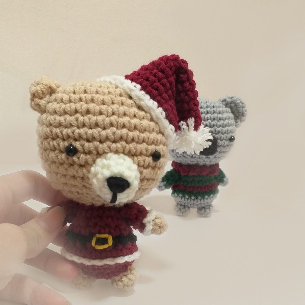 1 Handmade crochet Santa Bear (available as xmas tree decoration or keychain or doll) + pouch for storing them
