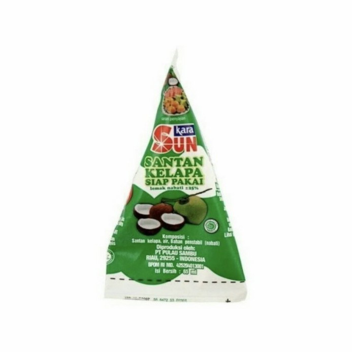 Sun Kara Santan merupakan santan kelapa siap pakai yang terbuat dari air kelapa yang dikukur, diolah dan dikemas secara modern & higienis menggunakan sterilisasi tinggi (UHT), sehingga kesegaran & keaslian santan terjaga dengan baik, serta membuatnya tahan disimpan dalam waktu lama di dalam kulkas. Mengandung lemak nabati kurang lebih 25% dan juga dibuat tanpa pengawet sehingga aman digunakan. Jadikan Santan ini sebagai pengganti alternatif santan kelapa tradisional untuk menghasilkan masakan lezat bagi keluarga tercinta.