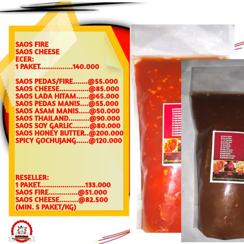 Saos untuk dipping ataupun dapat disiramkan pada Fried Chicken & aneka olahan seafood