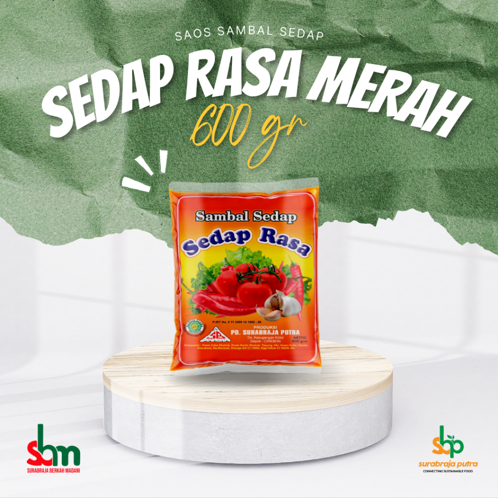 Sedap Rasa Merah adalah sambal dengan cita rasa Nusantara yang khas. Dibuat dari perpaduan resep ubi yang unik dan pedas yang lezat, sambal ini memiliki manis gurih yang pas untuk dijadikan cocolan aneka hidangan. Sedap Rasa Merah adalah teman baik untuk olahan mie, batagor, siomay, serta aneka jajanan dan masakan oriental lainnya.