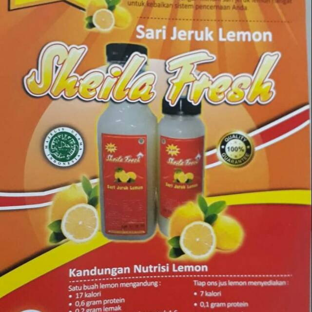 Sari Lemon Asli tanpa campuran apapun. Murni langsung diperas dr buah Lemon yang fresh. Tersedia 2 ukuran.