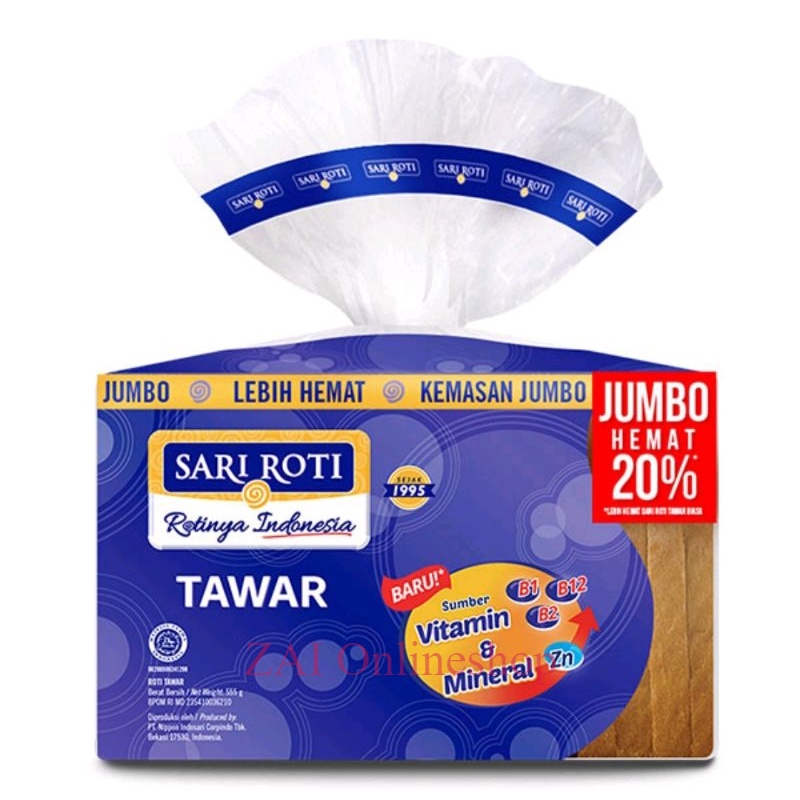 Sari Roti Tawar Jumbo Special roti yang tinggi akan serat dan terbuat dari bahan pilihan berkualitas serta diproduksi dan dikemas secara higienis