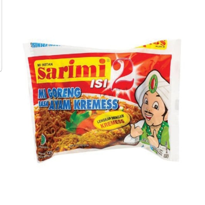 Sarimi Rasa ayam ayam kremess Isi 2 Mie Instan 113 g merupakan mie instan yang memiliki rasa yang gurih dan lezat. Terbuat dari bahan Mie Tepung terigu, minyak sayur, tepung tapioka, garam, pemantap, pengatur keasaman, mineral (zat besi) , pewarna (tartrazine Cl19140), antioksidan (TBHQ).