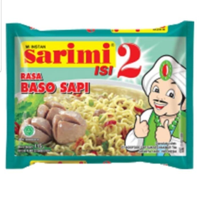 Sarimi Rasa ayam baso sapi Isi 2 Mie Instan 113 g merupakan mie instan yang memiliki rasa yang gurih dan lezat. Terbuat dari bahan Mie Tepung terigu, minyak sayur, tepung tapioka, garam, pemantap, pengatur keasaman, mineral (zat besi) , pewarna (tartrazine Cl19140), antioksidan (TBHQ).