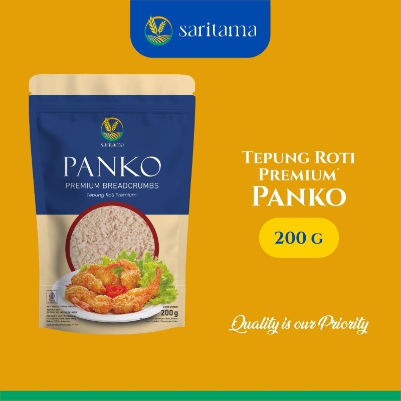 TEPUNG ROTI PANKO PREMIUM* SARITAMA terbuat dari tepung terigi berkualitas baik sehingga menghasilkan aroma dan rasa yang sedap. TEPUNG ROTI PANKO PREMIUM* SARITAMA membuat gorengan ayam, udang, daging maupun ikan serta sayuran terasa harum, gurih, renyah dan garing.