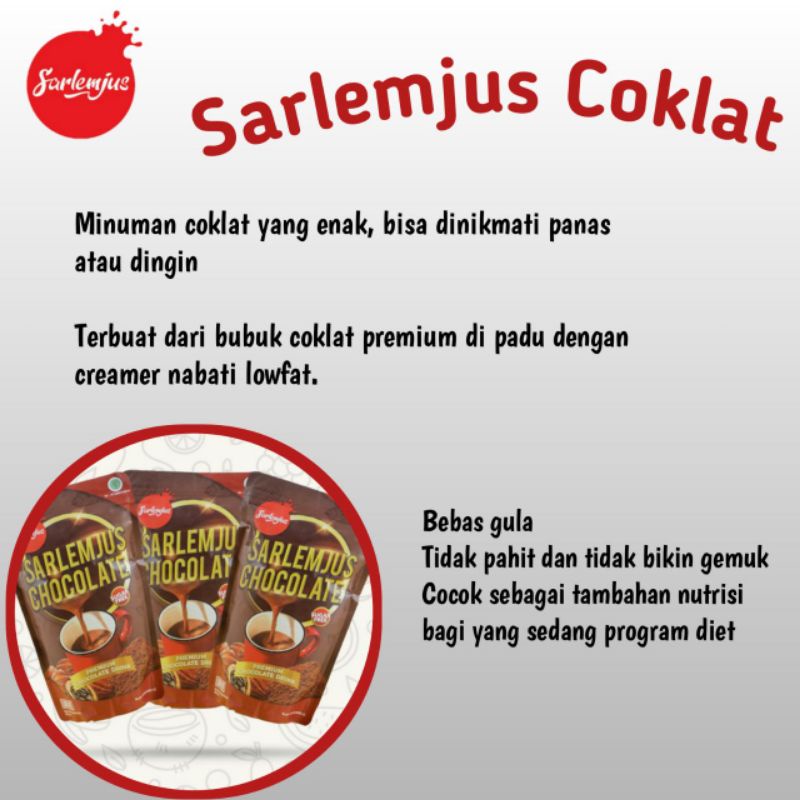 SARLEMJUS CHOCOLATE terbuat dari bubuk coklat PREMIUM dipadu dengan creamer nabati LOWFAT. .