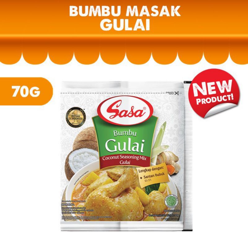 Sasa Bumbu Gulai 70 gr merupakan bumbu resep tradisional Indonesia asli yang dibuat dari bahan-bahan pilihan berkualitas yang telah dilengkapi dengan santan bubuk satu kemasan.