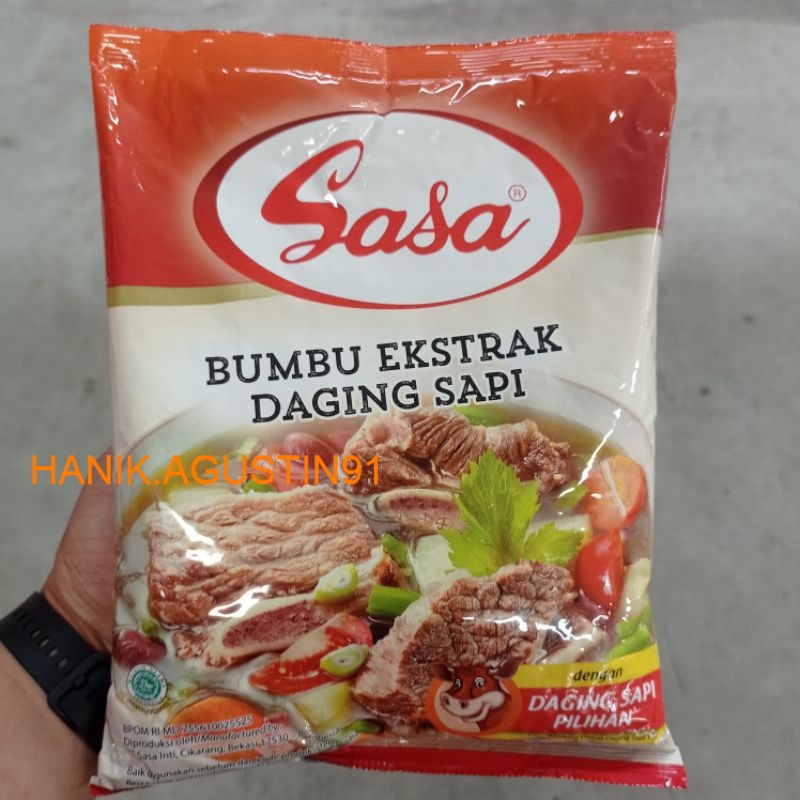Kami menyediakan bumbu kaldu SASA ekstrak daging sapi.