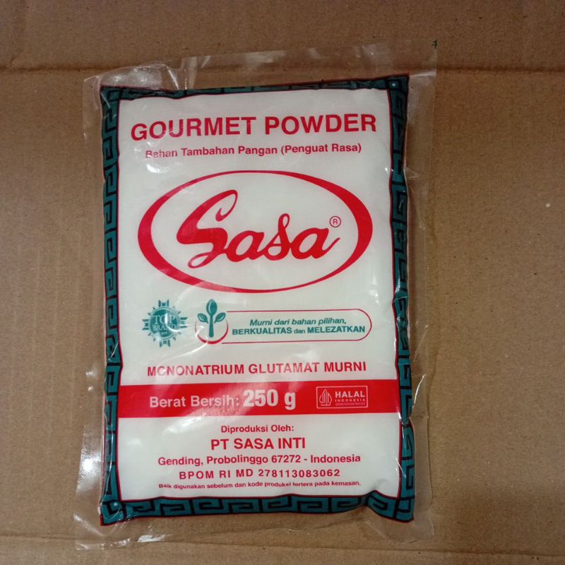 SASA MSG [250 g] merupakan penyedap rasa untuk cita rasa masakan yang lebih lezat di setiap santapan. Penyedap rasa Sasa diracik dari bahan tetes tebu alami yang difermentasi sehingga dapat memenuhi kebutuhan asam glutamat alami seperti yang ada pada ikan, udang, daging sapi, ASI, dan sayur mayur untuk Anda setiap hari. Bahan tetes tebu alami tersebut diproses secara alami menghasilkan penyedap rasa dengan kualitas terbaik untuk masakan Anda. Memberikan rasa gurih yang pas untuk berbagai hidangan kesukaan keluarga.