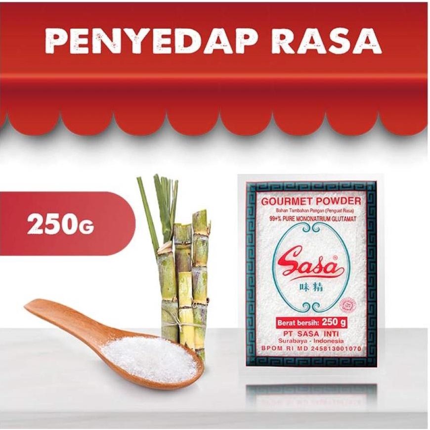 Sasa Penyedap Masakan terbuat dari alami tetes tebu alami, proses fermentasi yang menghasilkan protein glutamat secara alami dan diproses secara higenis, untuk menghasilkan produk berkualitas.