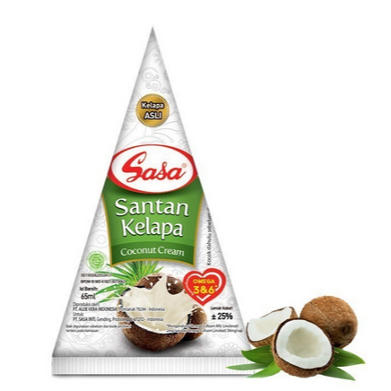 Sasa Santan cair adalah santan perasan pertama yang terbuat dari daging buah kelapa tua segar pilihan. Diproses secara higienis, dengan teknologi modern. Rasa dan aroma santan asli. Dapat dikonsumsi langsung (tidak perlu dimasak dulu) Tanpa Bahan Pengawet 0% cholesterol. Sasa Santan Cair dapat digunakan secara