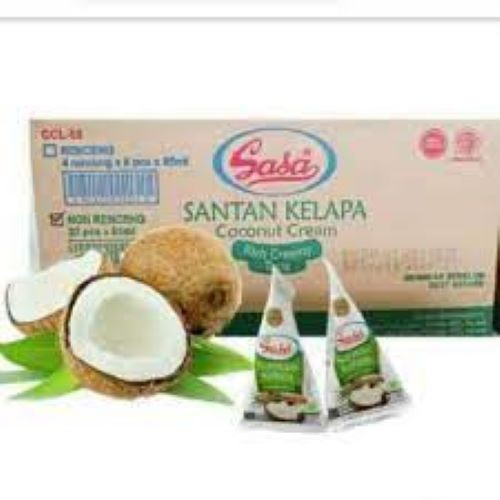 SASA SANTAN CAIR merupakan santan kelapa siap pakai yang terbuat dari air kelapa yang dikukur, diolah dan dikemas secara modern & higienis menggunakan sterilisasi tinggi (UHT), sehingga kesegaran & keaslian santan terjaga dengan baik, serta membuatnya tahan disimpan dalam waktu lama di dalam kulkas. Mengandung lemak nabati kurang lebih 25% dan juga dibuat tanpa pengawet sehingga aman digunakan. Jadikan Santan ini sebagai pengganti alternatif santan kelapa tradisional untuk menghasilkan masakan lezat bagi keluarga tercinta. Cocok digunakan untuk satu kali memasak, untuk 4-5 porsi.