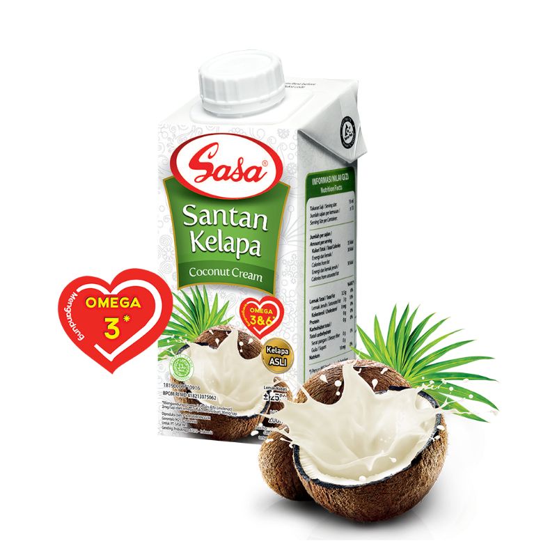 Sasa Santan cair adalah santan perasan pertama yang terbuat dari daging buah kelapa tua segar pilihan. Diproses secara higienis dengan teknologi modern. Rasa dan aroma santan asli.